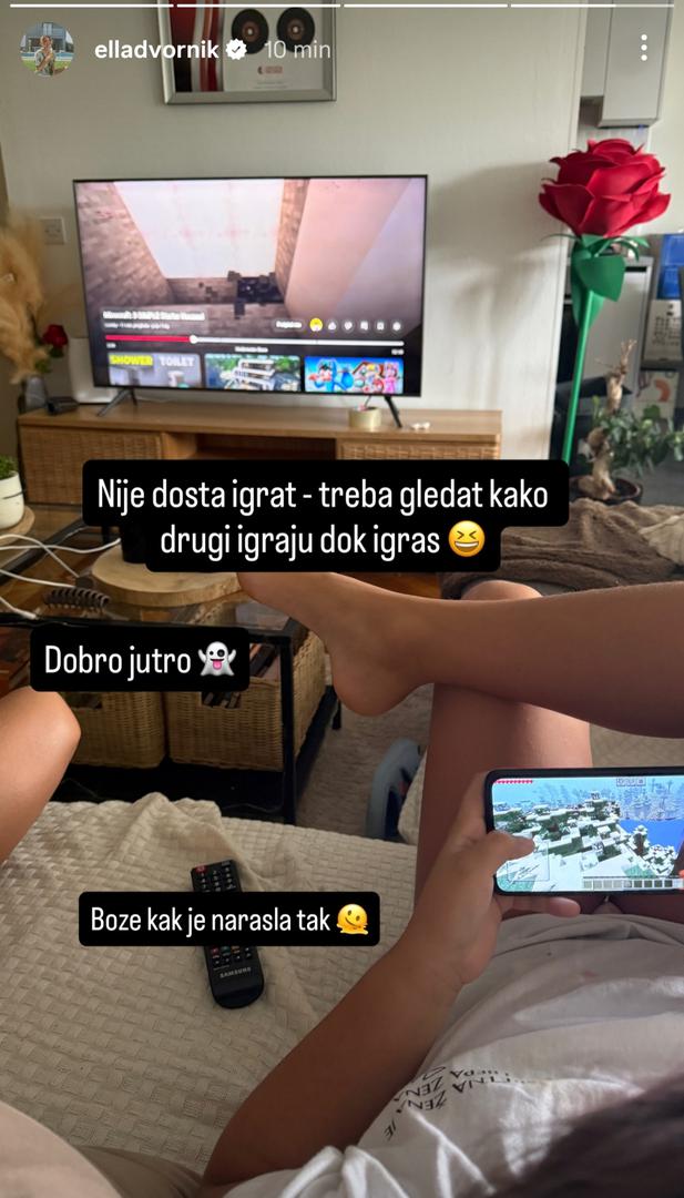 “Nije dosta igrat – treba gledati kako drugi igraju dok igraš”, napisala je Ella uz prizor djevojčica koje igraju videoigrice te emotivno zaključila: “Bože kak’ je narasla tak'”.