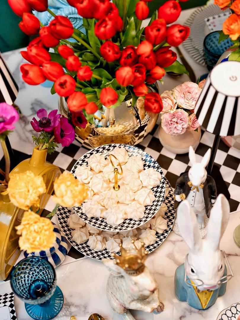 Inspiriran čarolijom Alise u zemlji čudesa, moj uskrsni stol ove je godine postao mala bajka – mjesto gdje vrijeme na trenutak staje, gdje su boje življe, a osmijesi iskreniji… Kao da je Bijeli Zec upravo protrčao kroz prostoriju, a Šeširdžijina čajanka oživjela među cvijećem i svijećama...