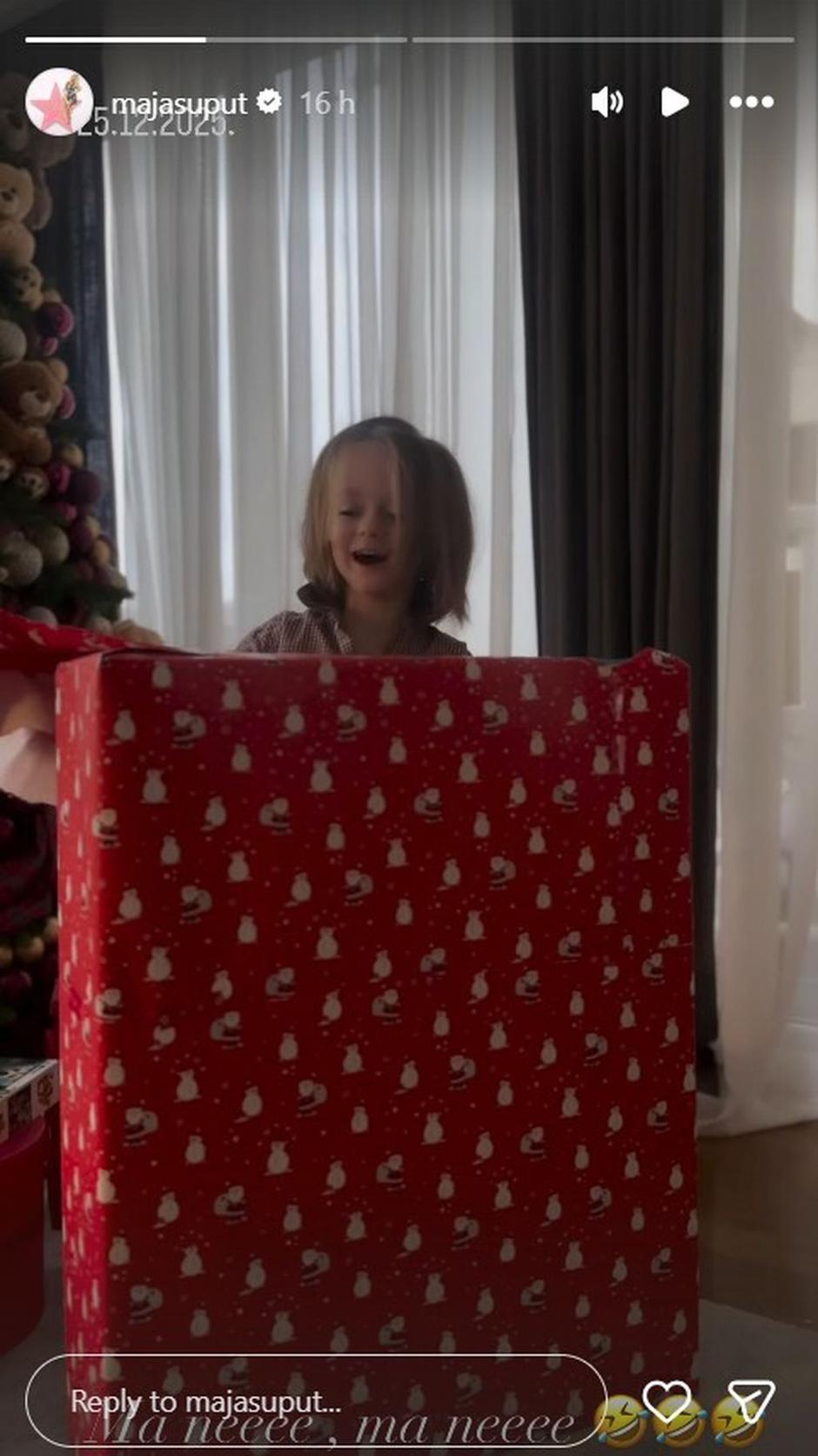 Glazbenica i poduzetnica Maja Šuput nekoliko dana nakon Božića pokazala je kako je blagdansko jutro izgledalo u njezinu domu. Naime, Maja je na Instagramu podijelila preslatki video u kojem je pokazala kako je njezin sin Bloom Tatarinov reagirao na božićni poklon koji ga je dočekao ispod bora. U pidžamici, Bloom je stajao uz ogromni poklon dok ga je mama znatiželjno pitala što misli da se nalazi unutra. Iskreno je priznao da ne zna, ali je dodao kako bi ga trebalo otvoriti da bi saznali. Čim je počeo trgati papir, njegovo uzbuđenje naglo je poraslo, a vrlo brzo je shvatio o kakvom se poklonu radi. Riječ je o velikom kompletu sa stazama i autićima za utrkivanje, a oduševljenje nije mogao sakriti.