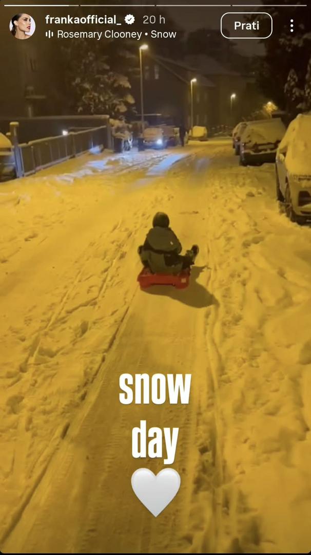 Prvi ovogodišnji snijeg koji je prekrio glavni grad izmamio je mnoge van, a bijelom pokrivaču nije odoljela ni poznata pjevačica Franka Batelić. Na društvenim mrežama objavila je snimke sanjkanja po zagrebačkim ulicama i igre u parku dok su pahulje padale. U centru pažnje bili su njezini mališani, četverogodišnji Viktor i dvogodišnja Greta, a ponosna mama zabilježila je svaki veseli trenutak.