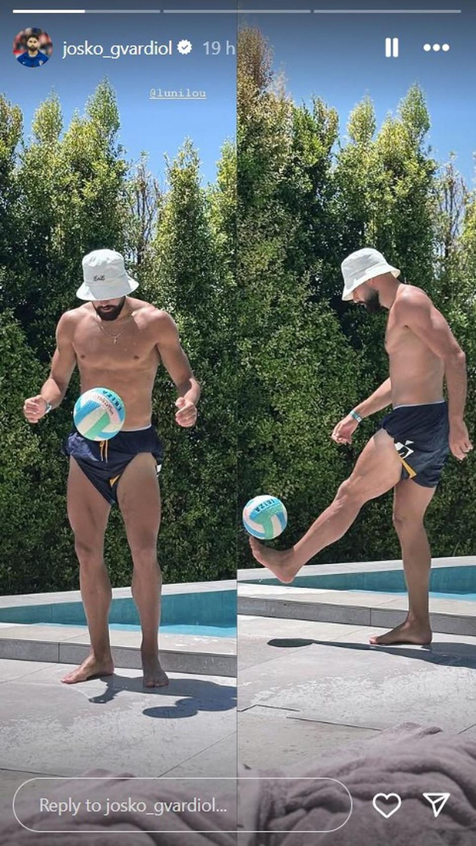 Nogometaš Joško Gvardiol trenutačno uživa na odmoru, a fotkama se pohvalio na društvenim mrežama. Naime, Joško je ove godine za svoj odmor odabrao atraktivnu destinaciju- Ibizu s koje je podijelio nekoliko prizora. U društvu prijatelja, Gvardiol uživa u svim čarima ljeta – od vožnje jet-skijem do uživanja na bazenu. No, jedna fotografija izazvala je posebnu pažnju – ona na kojoj je nogometaš pozirao pokraj bazena i pokazao isklesani torzo, što nije prošlo nezapaženo među obožavateljima.