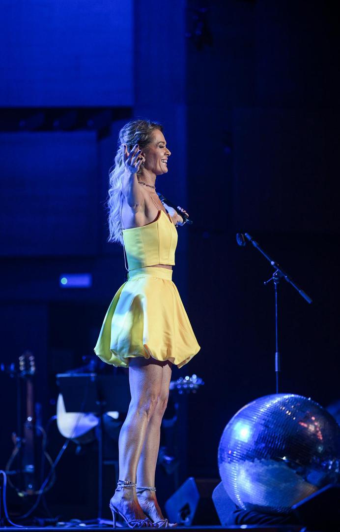 Minea je na koncertu izvela svoje brojne pjesme, a na pozornici se pojavila u žutoj kombinaciji koja je posebno isticala njezine noge.