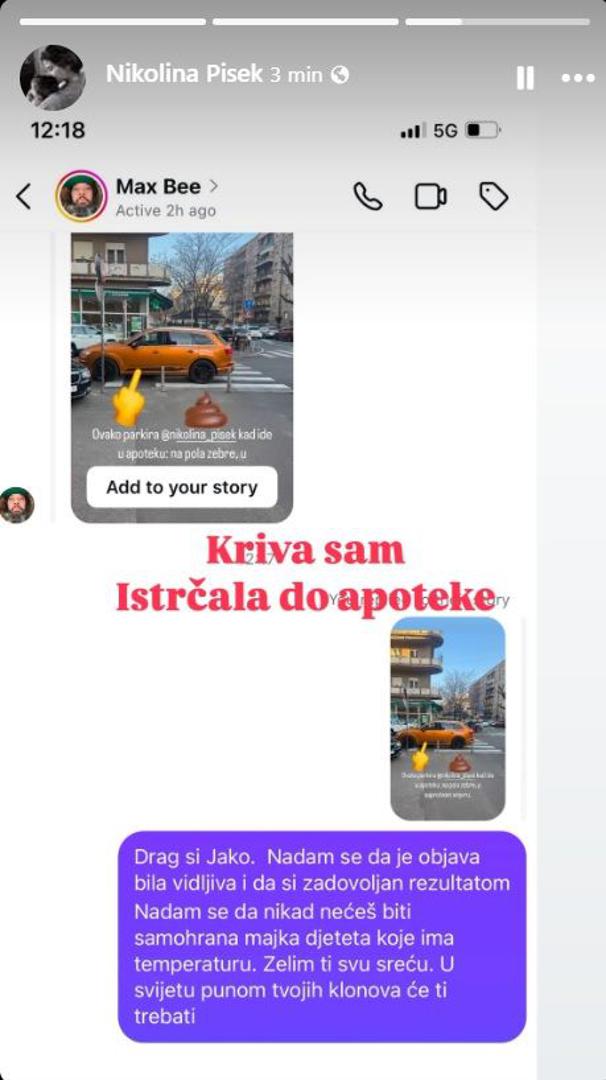 FOTO Nikolinu Pišek nemilosrdno napao pratitelj na Instagramu zbog nepropisnog parkiranja na zebri