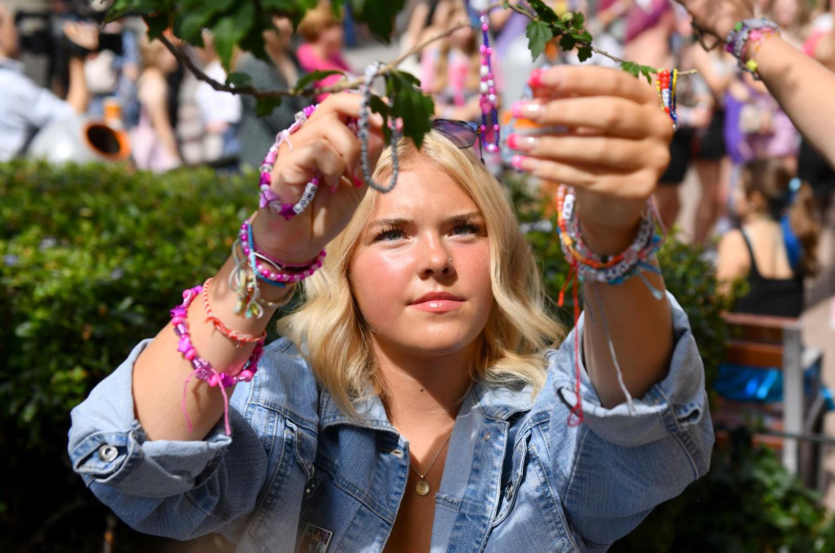 Osim toga, mnogi su obučeni u kombinacije koje su htjeli nositi na koncert, a razmjenjuju i narukvice prijateljstva što je uobičajena praksa na njezinim koncertima.