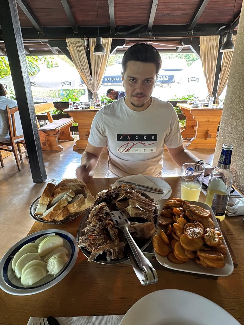 Plesač Ivan Jarnec, odnedavni suprug nećakinje Marka Perkovića Thompsona - Lejdi Perković, na svom je Instagram profilu iznenadio javnost objavom rijetke fotografije Šimuna Perkovića, najstarijeg sina popularnog pjevača. Jarnec je tako Šimunu čestitao 22. rođendan. - Dan nakon momačke smo Šimun i ja bili dosta gladni pa smo išli krkat. Usput sretan rođendan - napisao je. S obzirom na to da Thompson obitelj skriva od medija, objava je izazvala veliko zanimanje.