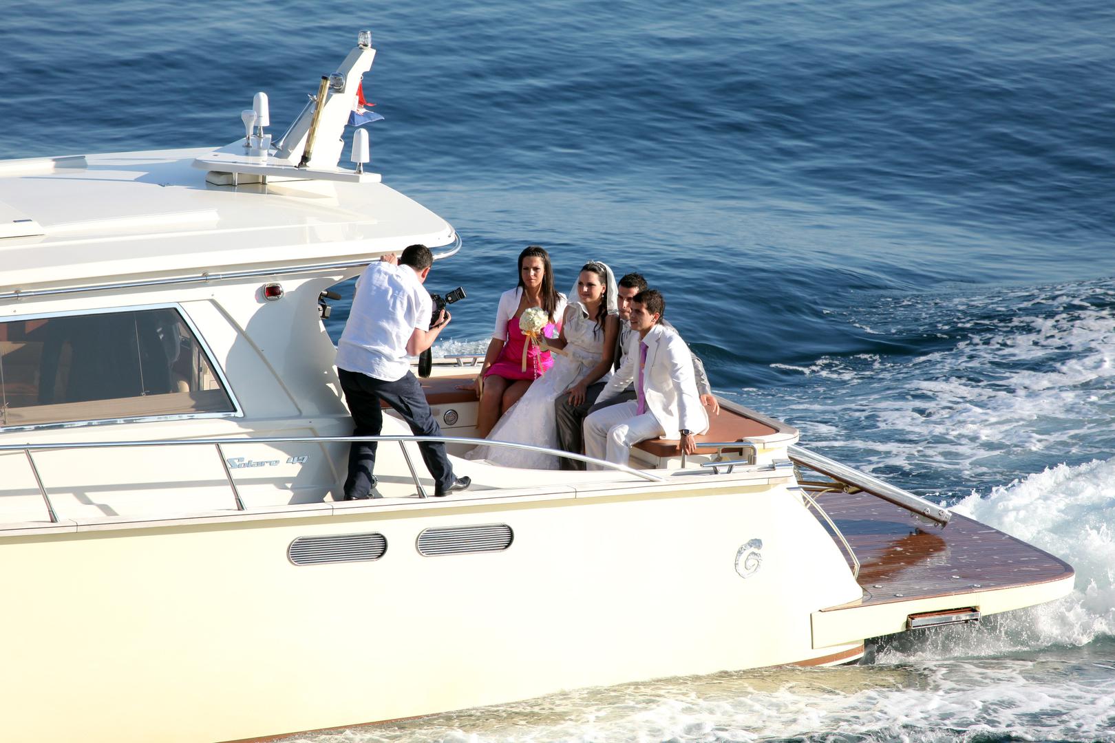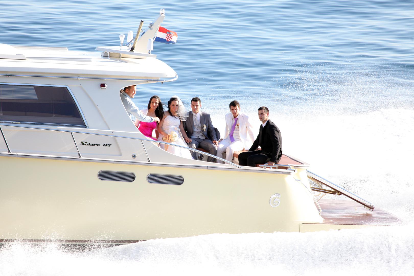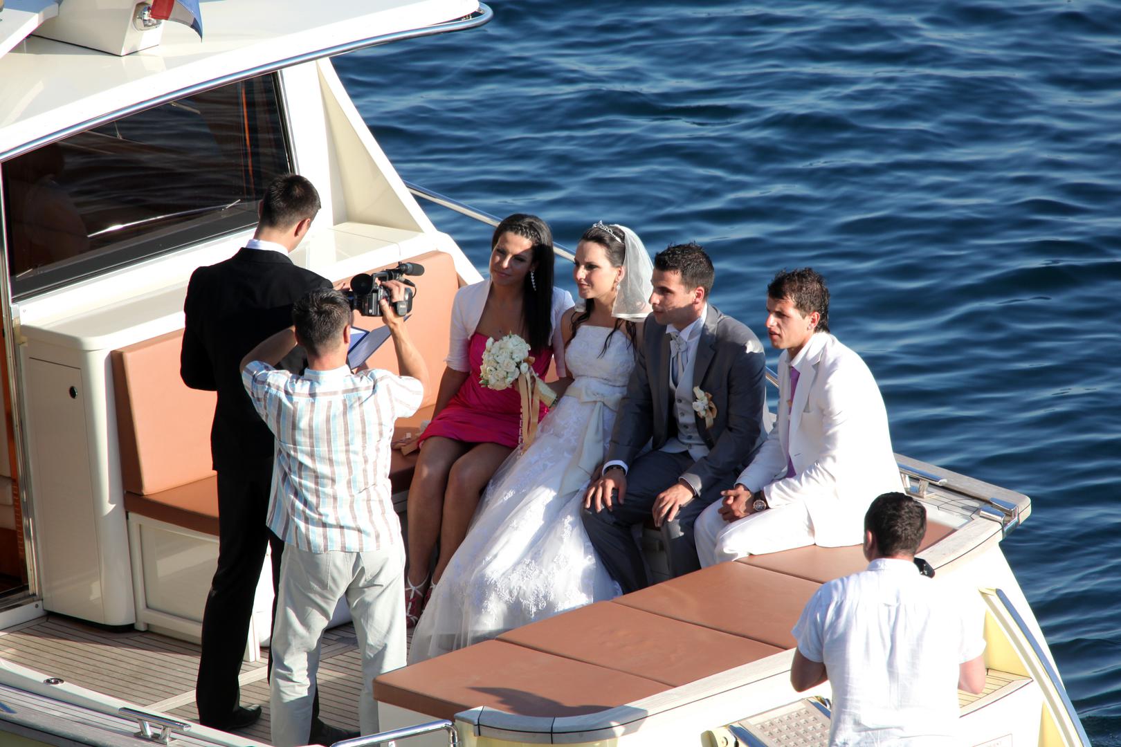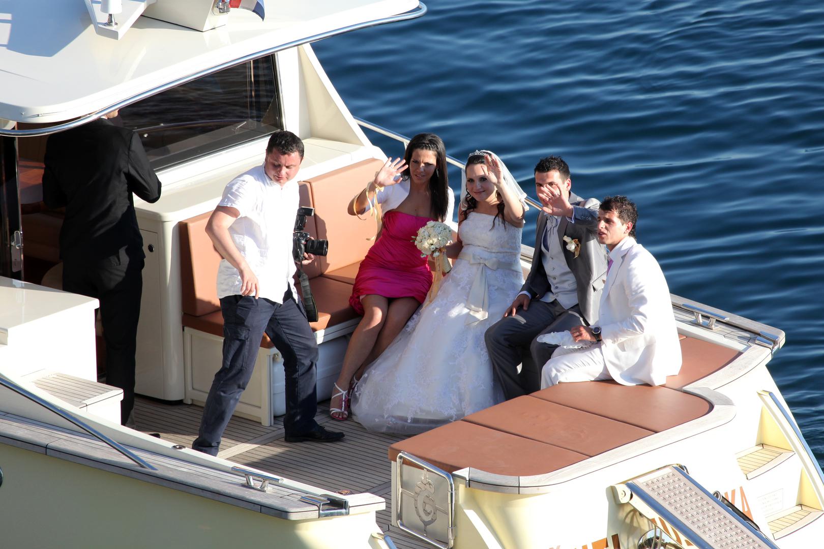 Nakon ceremonije, par je s kumovima čamcem stigao do pristaništa, gdje ih je dočekala rodbina i prijatelji, a zatim su svi zajedno krenuli prema hotelu na slavlje s više od 120 gostiju.
