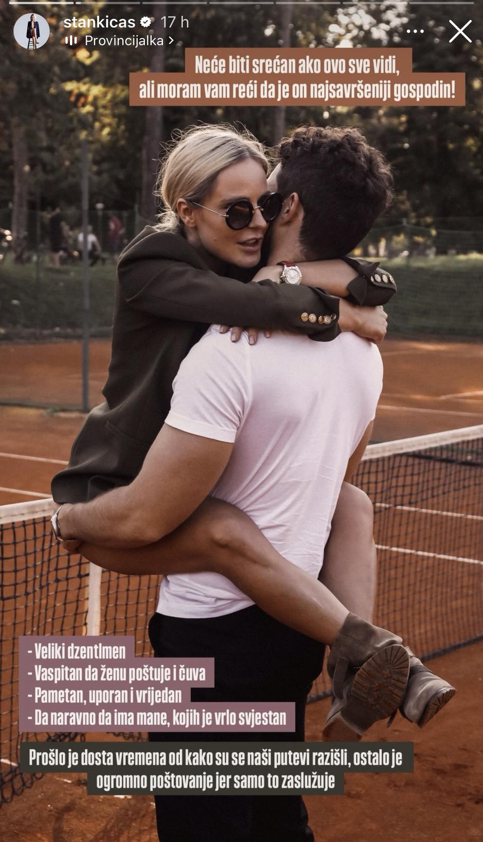 Stankica Stojanović, pobjednica prošle sezone "Gospodin Savršeni", a koju je za svoju bolju polovicu odabrao Toni Šćulac, sada je na društvenoj mreži Instagram objavila zajedničku fotografiju i posvetila mu dirljive riječi. S obzirom na to da par već više od godinu dana nije zajedno, ovaj potez je mnoge iznenadio. - Neće biti sretan ako sve ovo vidi, ali moram vam reći da je on najsavršeniji gospodin! On je veliki džentlmen, odgojen da ženu čuva i poštuje, pametan, uporan i vrijedan, da - naravno da ima mane, kojih je vrlo svjestan. Prošlo je dosta vremena otkad su se naši putevi razišli, ali ostalo je ogromno poštovanje jer samo to zaslužuje - napisala je iskreno Stankica uz fotografiju u Tonijevom zagrljaju.