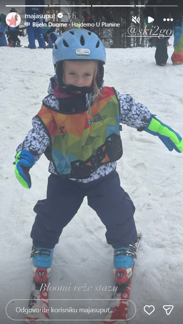 Poznata hrvatska pjevačica i televizijska voditeljica Maja Šuput ponovno je privukla pažnju svojih pratitelja na Instagramu gdje je Bloom bio glavna zvijezda njezinih objava. Naime, nakon što su se vratili s odmora u Indoneziji, Maja je otkrila da je Bloom otišao na skijanje i to s društvom. Maja je tako pokazala kako Bloom skija. "S ljetovanja na skijanje s ekipom", napisala je pored jedne fotografija, pored druge je istaknula da "reže stazu".