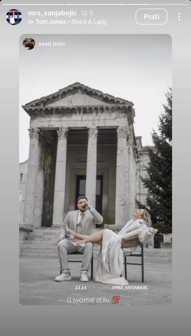 Zanimljivo je kako su mladenci uspjeli organizirati vjenčanje u iznimno kratkom roku, s obzirom na to da su zaruke objavili tek krajem listopada. Njihova ljubavna priča ubrzala se nakon romantične prosidbe u Sarajevu, rodnom gradu mladoženje, gdje je Sead iznenadio Sanju na mostu Festina Lente. Iako je ona mislila da snimaju reklamu, Sead je kleknuo i postavio sudbonosno pitanje, na koje je Sanja kroz suze radosnice odgovorila potvrdno. Sead je također obilježio ovaj poseban dan objavom fotografije na kojoj poziraju ispred Augustova hrama u Puli, gradu koji je postao njihov zajednički dom nakon završetka showa.