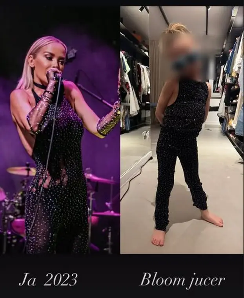 Da je maleni Bloom prava zvijezda Instagram profila naše pjevačice Maje Šuput, znaju već svi. No, on to nastavlja potvrđivati. Ovoga puta Maja je objavila dvije fotografije koje su sve nasmijale. Na prvoj je prikazana ona kako pjeva na jednom koncertu iz 2023. godine, a na sebi ima usku crnu haljinu sa srebrnim točkicama, odnosno kamenčićima. Druga fotografija otkriva nam njenog sina Blooma u vrlo sličnoj odjevnoj kombinaciji, što je Maju odmah podsjetilo na njen stajling.