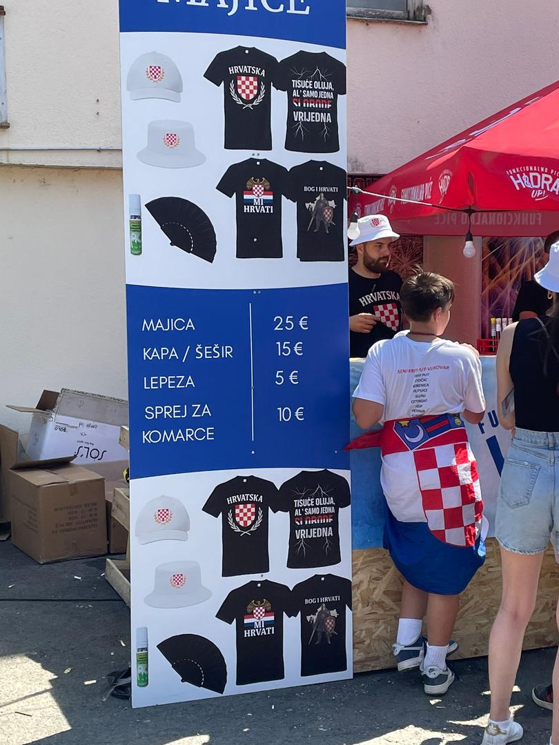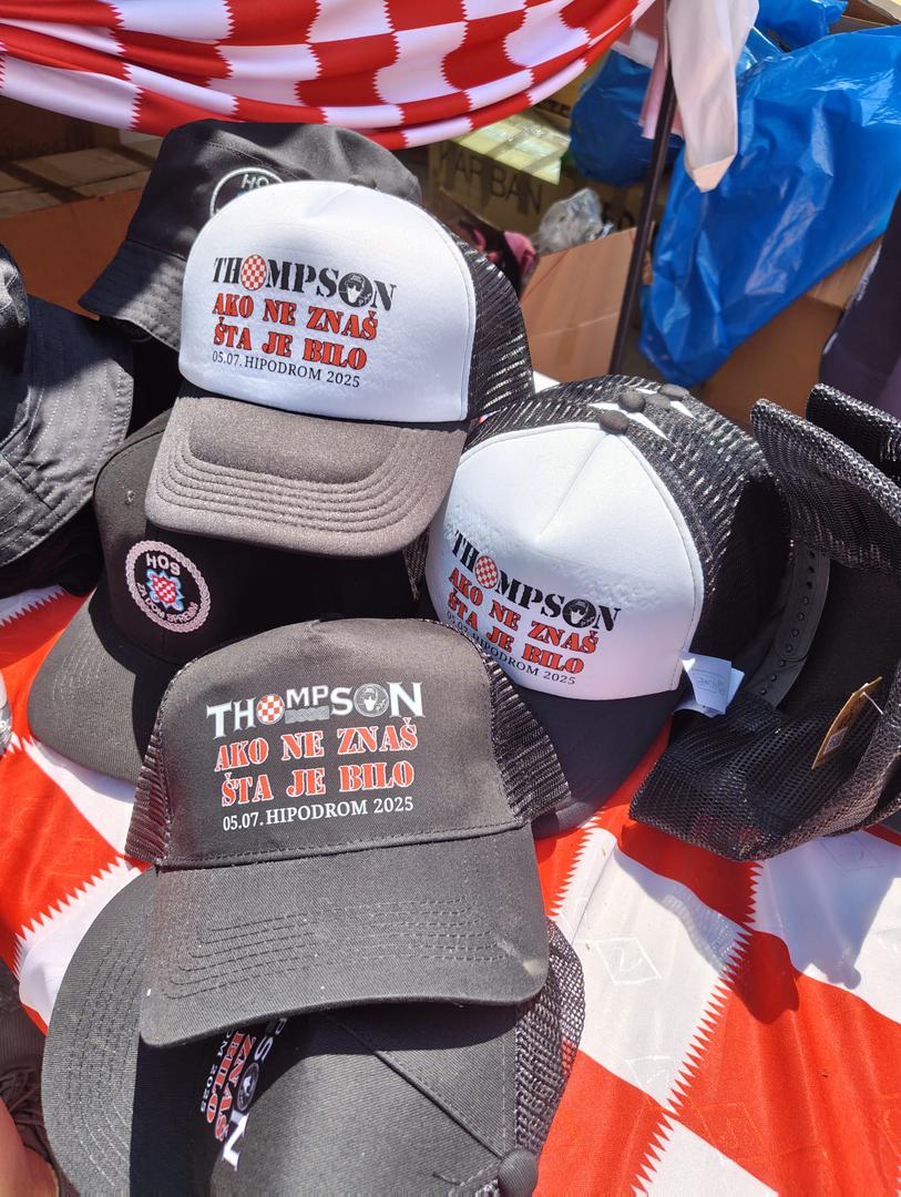 Marko Perković Thompson večeras će održati koncert godine na zagrebačkom Hipodromu, a uoči ovog događanja mnogi obožavatelji koji dolaze na koncert kupili su posebne majice i dodatke.