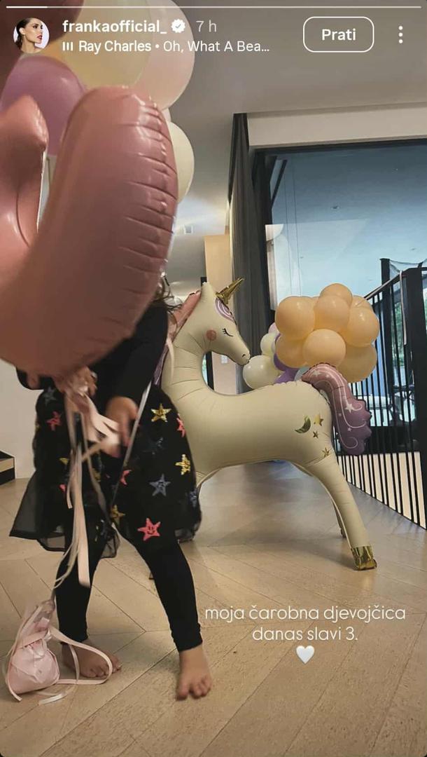Pjevačica Franka Batelić i njezin suprug, bivši nogometni reprezentativac Vedran Ćorluka, danas imaju veliki razlog za slavlje. Njihova mlađa kći Greta slavi svoj treći rođendan, a ponosna mama podijelila je djelić slavljeničke atmosfere na društvenim mrežama. Pokazala je iznenađenje koje je dočekalo slavljenicu, odnosno Gretu okruženu ružičastim balonima s motivom jednoroga. Uz prizor je napisala kratku, ali emotivnu poruku: - Moja čarobna djevojčica danas slavi 3. - dajući naslutiti da je veselje započelo od ranog jutra.