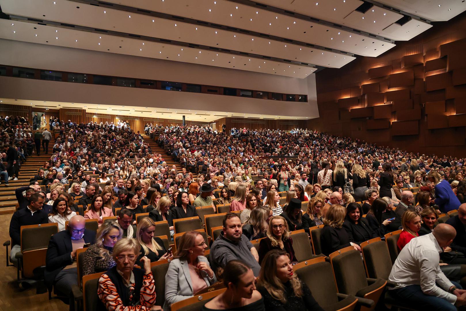 Publika ju je dočekala gromoglasnim aplauzom, a pojavivši se na pozornici u prekrasnoj bijeloj haljini, odmah je unijela dašak elegancije i topline u ispunjenu dvoranu Vatroslav Lisinski.