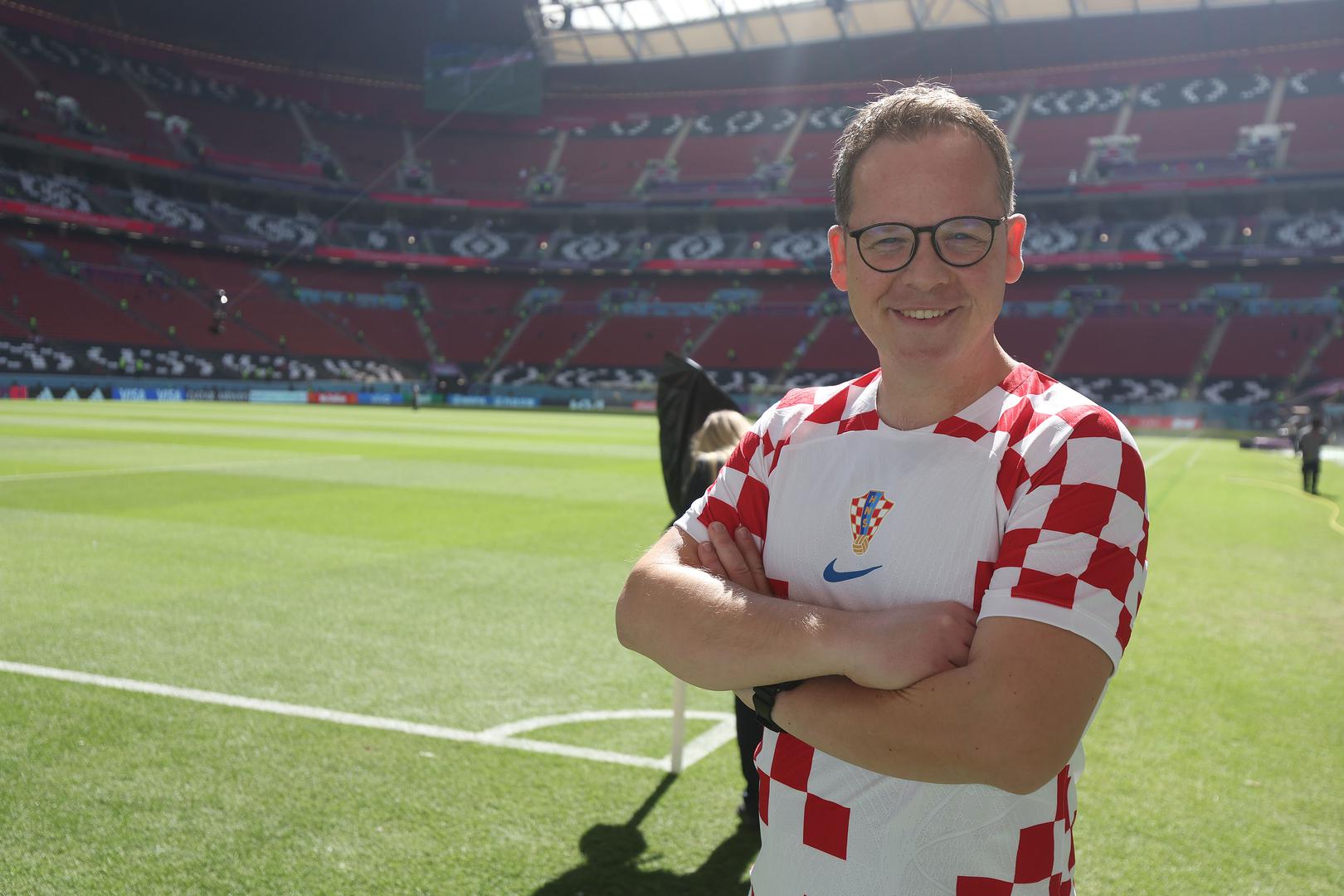 Nakon što je u nedjelju odradio prvu polufinalnu emisiju Supertalenta, spremio se i otišao u Katar, a Pixsellovi fotografi snimili su ga na terenu spremnog za navijanje.