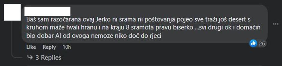 U ponedjeljak navečer u showu 'Večera za 5 na selu' društvo se dobro najelo i odlično zabavilo kod Zorana iz Viškova koji je osvojio visokih 38 bodova! Ipak gledateljima se nakon epizode nikako nije svidjelo Jerkovo ponašanje, a ni ocjena koju je dao Zoranu, pa su brzo na društvenim mrežama požurili komentirati cijelu situaciju.
