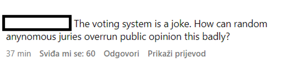 - Izborni sistem je smiješan. Kako mogu anonimni žiriji nadglasati publiku ovako jako? – pita se u komentarima jedan gledatelj.