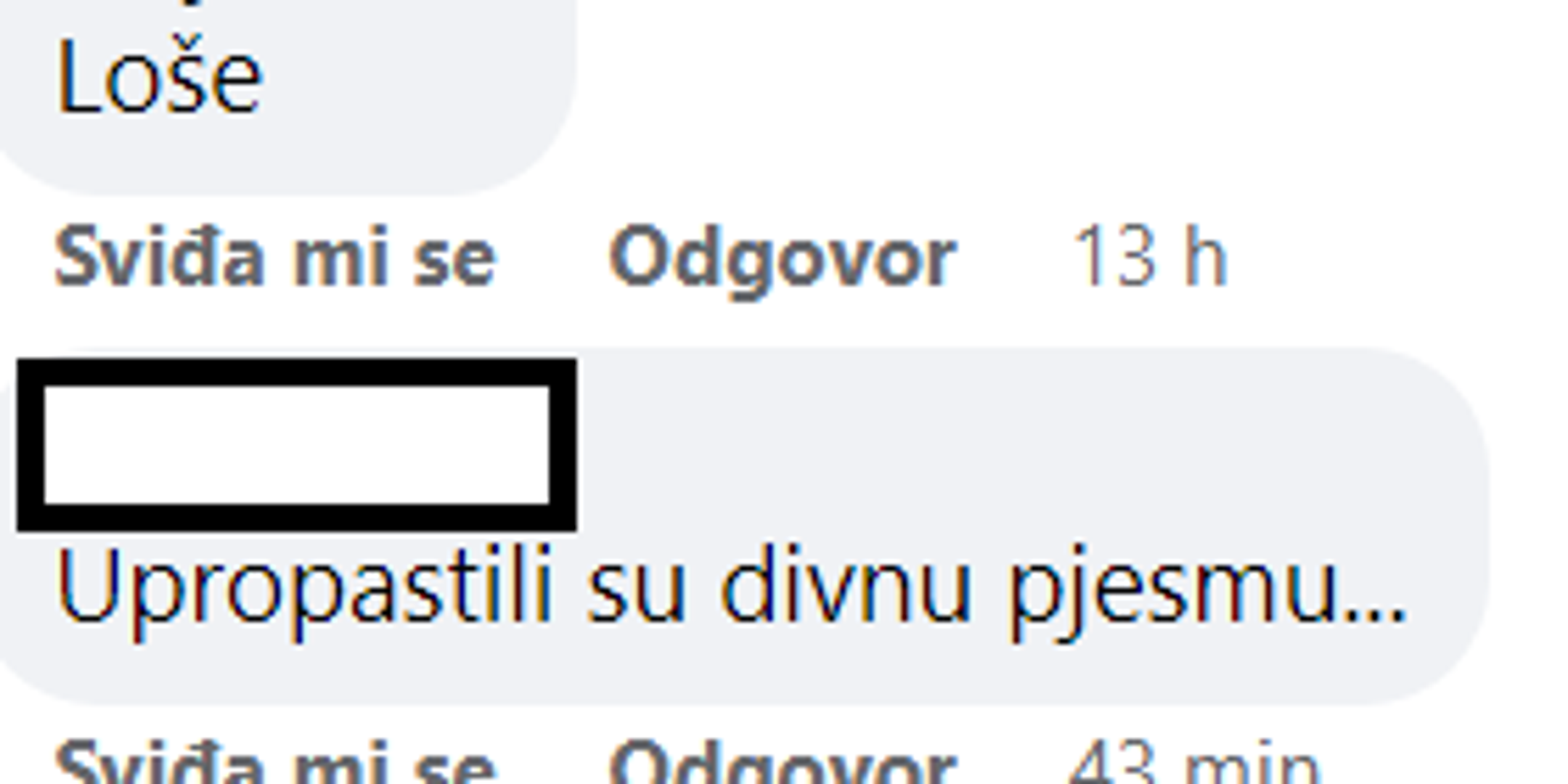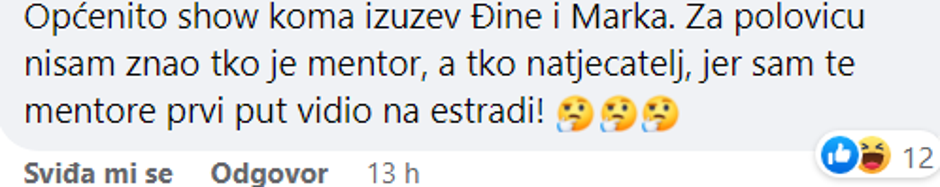 Za nastup voditelja Antuna Ponoša i pjevačice Lare Antić Prskalo komentari su bili obrnuti. "Upropastili su divnu pjesmu", "Loše", pisali su gledatelji.