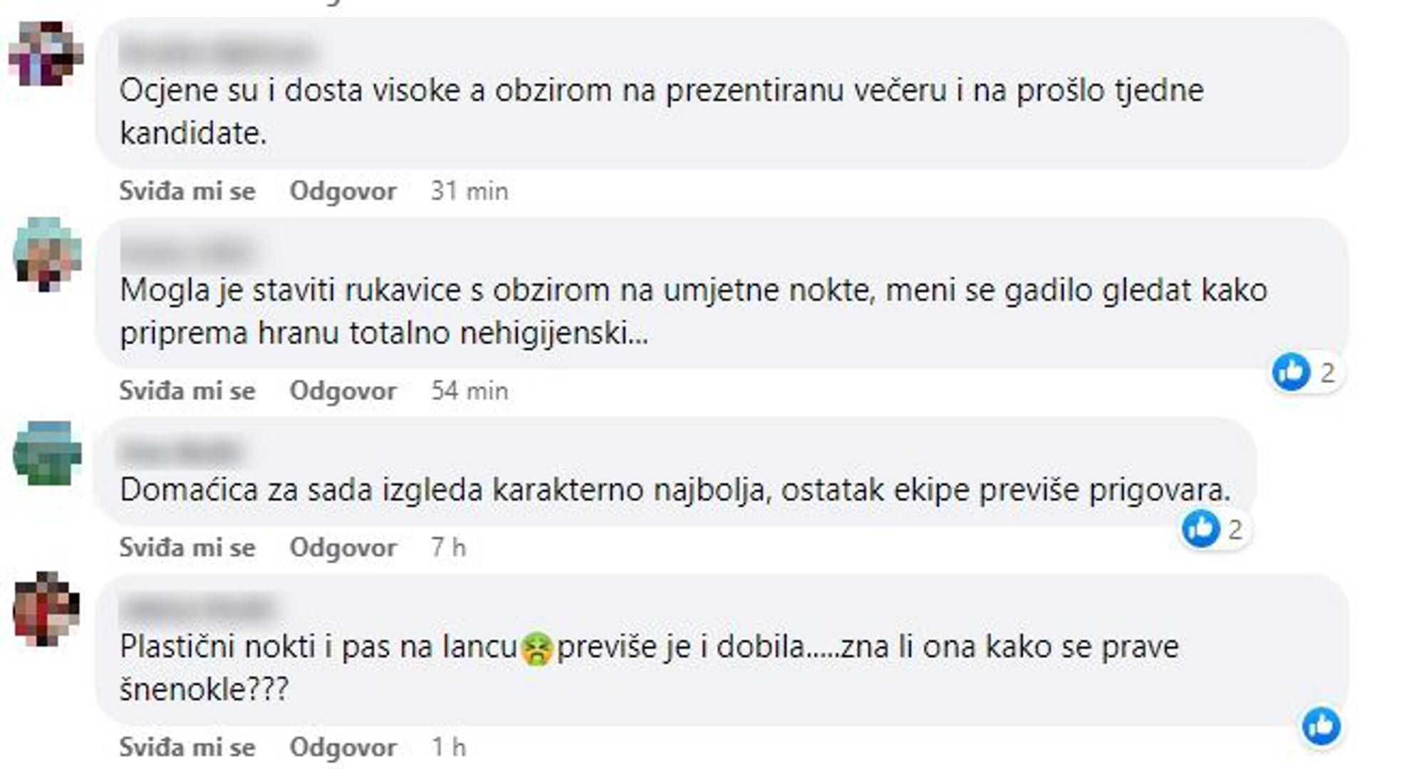 "Mogla je staviti rukavice s obzirom na umjetne nokte, meni se gadilo gledati kako priprema hranu totalno nehigijenski...", komentirala je gledateljica.