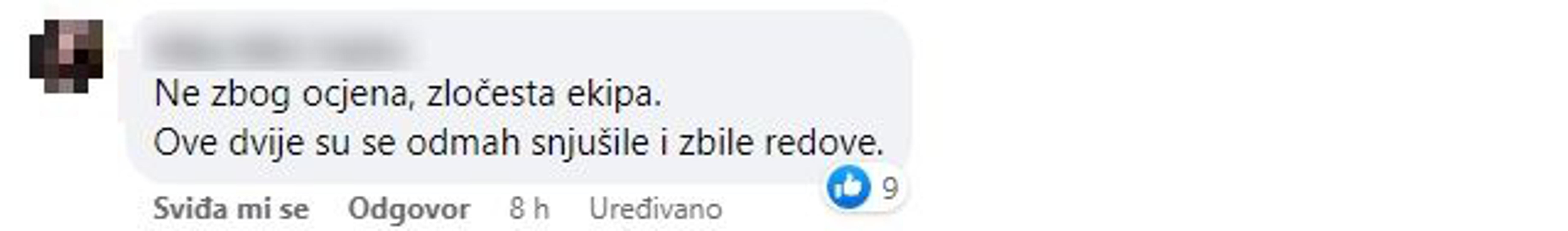 "Ne zbog ocjena, zločesta ekipa. Ove dvije su se odmah snjušile i zbile redove", oštro je komentirala gledateljica, a drugima se nisu dopali njeni umjetni nokti.