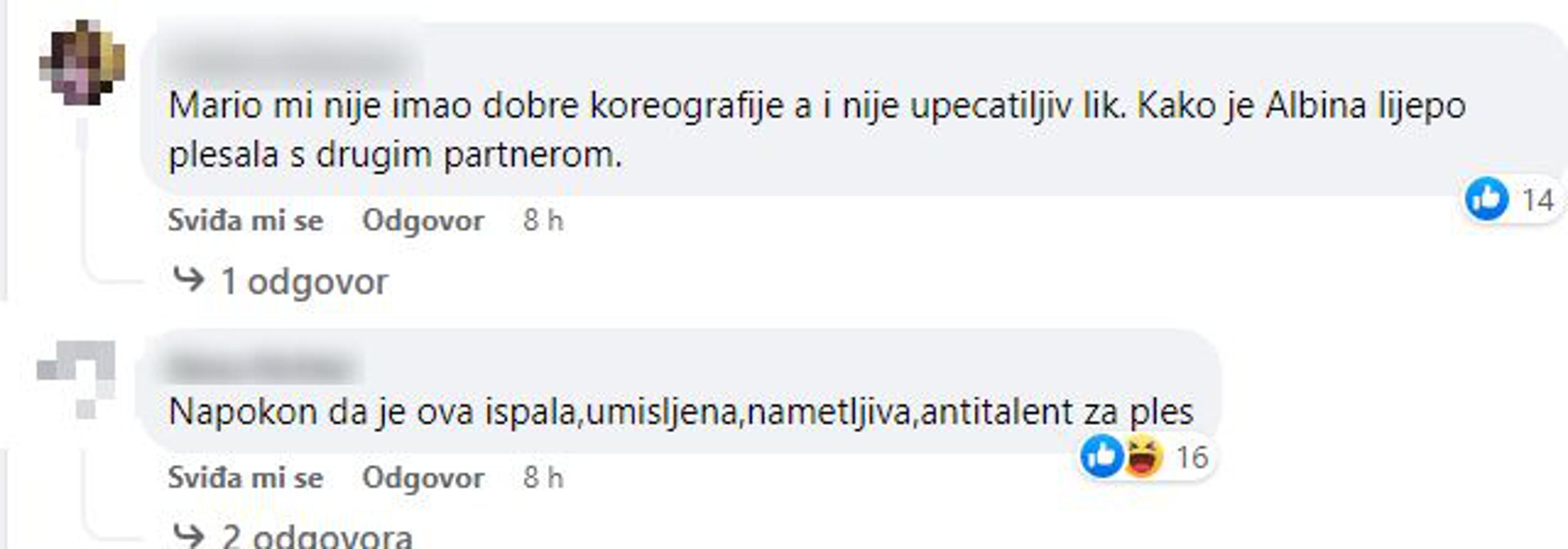 "Mario mi nije imao dobre koreografije, a i nije upečatljiv lik. Kako je Albina lijepo plesala s drugim partnerom", jedan je od komentara.