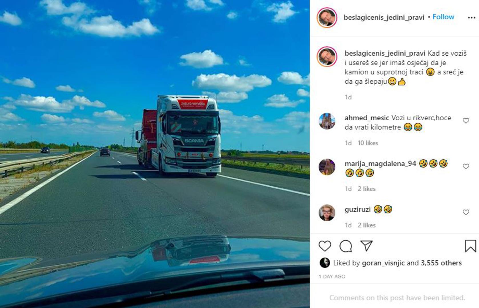 Bosanskohercegovački glumac Enis Bešlagić na svom je Instagramu s pratiteljima podijelio jezivo iskustvo s autoceste. Naime, pri vožnji na jednoj autocesti uočio je kamion koji je izgledao kao da ide ususret njemu i to u suprotnom smjeru.