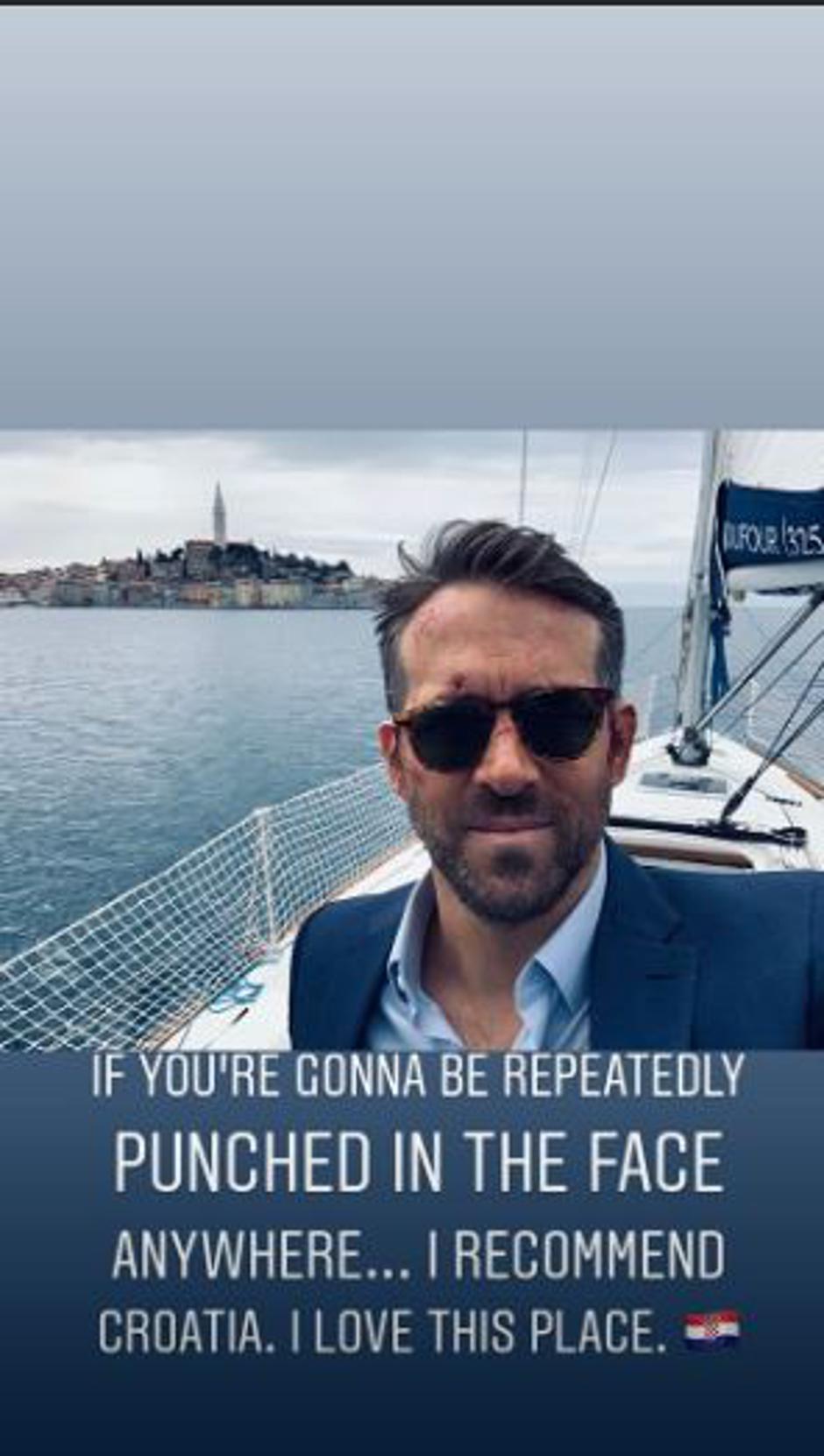 Tako se Ryan Reynolds odlučio na Instagram storyju javiti s jedrilice na kojoj pozira s filmskom šminkom. Reynolds izgleda kao da su ga pretukli, a zapravo se radi o snimanju jedne od akcijskih scena.