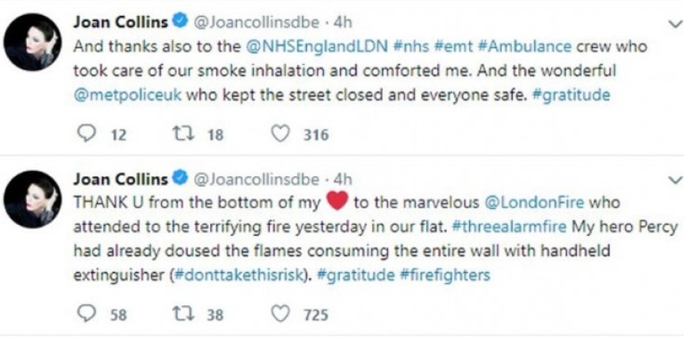 - Ostaci...hvala londonskoj vatrogasnoj brigadi. Hvala od srca svima koji su sudjelovali u gašenju požara u mom domu – napisala je Joan na Twitteru.