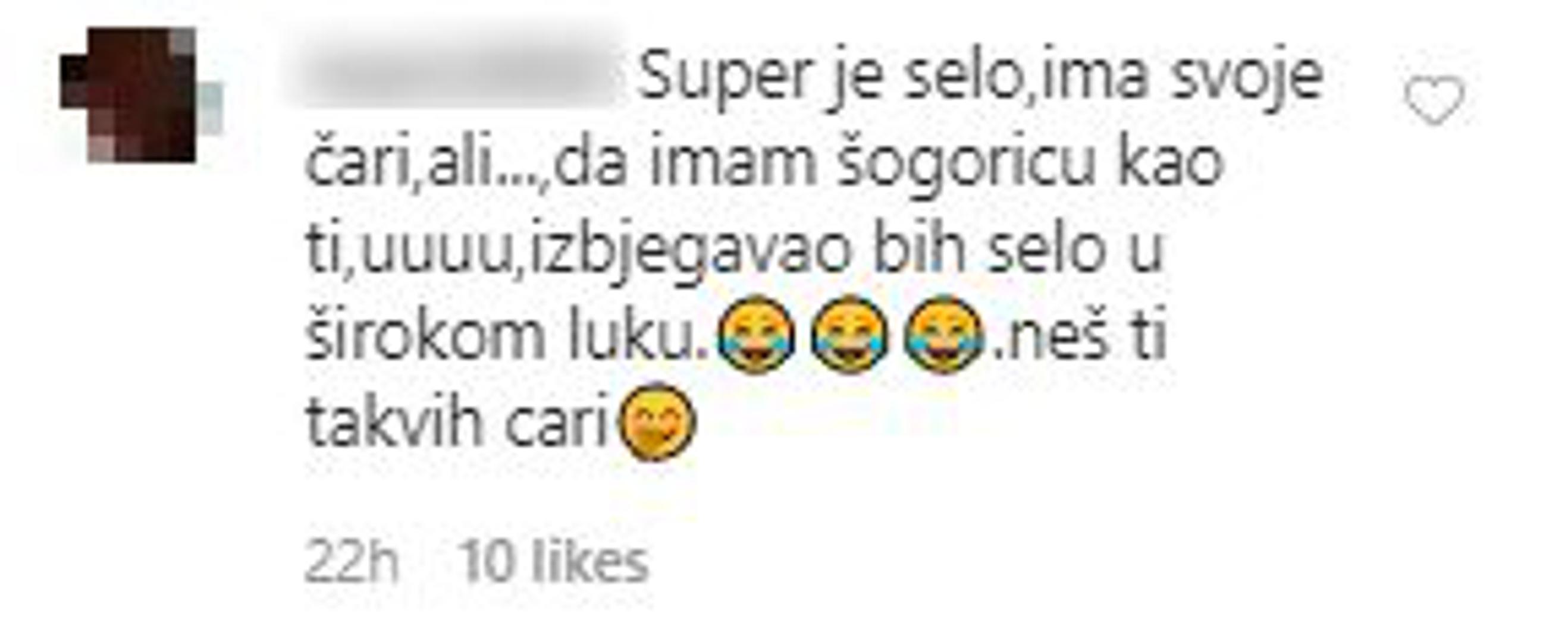 - Super je selo,ima svoje čari,ali...,da imam šogoricu kao ti,uuuu, izbjegavao bih selo u širokom luku. Ne'š ti takvih čari - stoji ispod fotografije, a komentar je prikupio desetak lajkova.