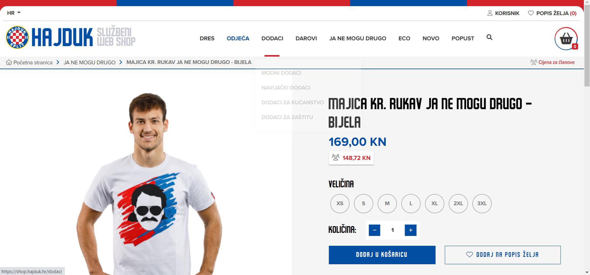 Riječ je o majici koja je napravljena u sklopu Hajdukove marketinške akcije Ja ne mogu drugo koja je nazvala prema istoimenoj pjesmi koju su zajedno otpjevali Mišo Kovač i Saša Antić. Majica se može kupiti za 169 kuna u Hajdukovom webshopu, a ako ste član Hajduka možete ju kupiti po nešto nižoj cijeni od 148,72 kn.
