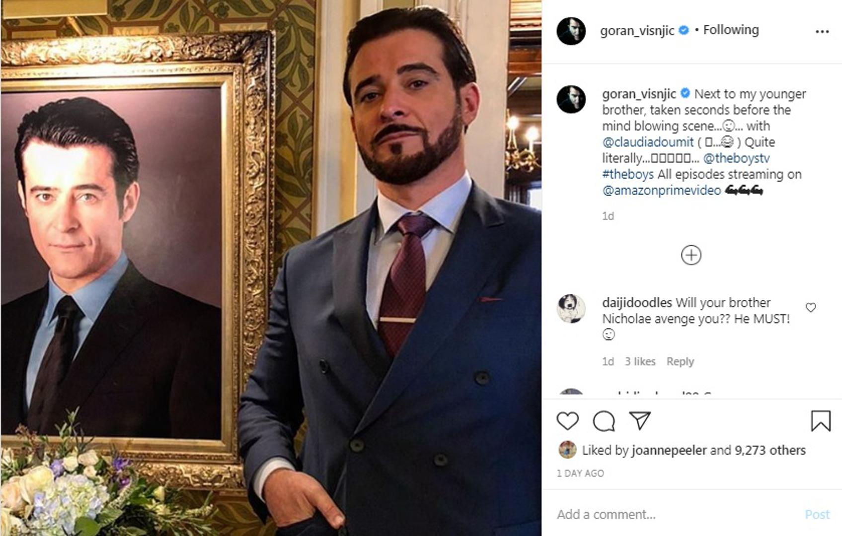 Šibenski glumac Goran Višnjić na Instagramu je dobro nasmijao pratitelje fotografijom na kojoj na setu serije "The Boys" pozira pokraj svog portreta.