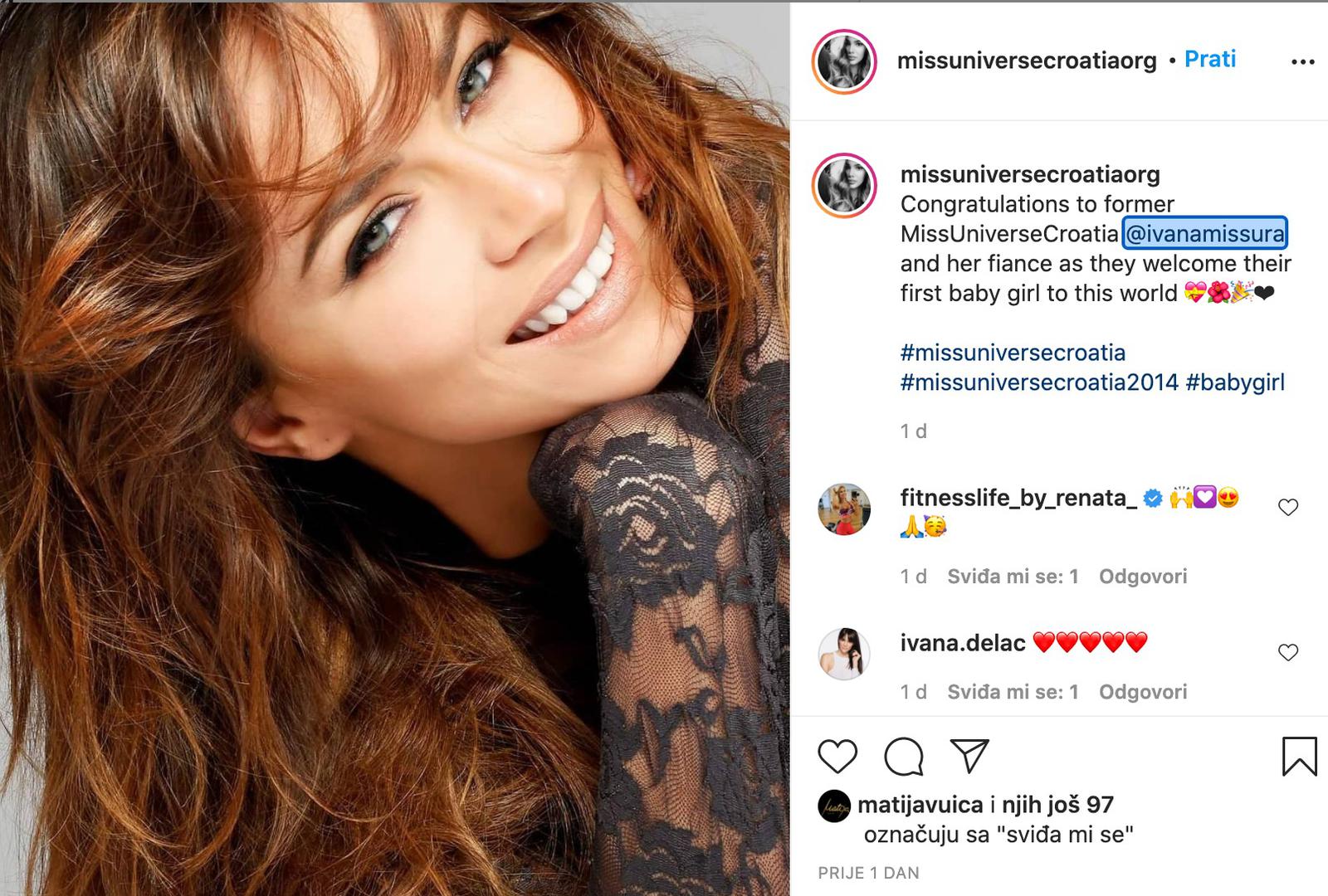 Na službenom Instagram profilu Miss Universe Hrvatske osvanula je čestitka upućena bivšoj misici Ivani Mišuri i njezinom odabraniku Goranu Vlaoviću koji su postali roditelji malene djevojčice. Ova čestitka otkrila je i jedan detalj koji javnost nije znala, a to je da su Ivana i bivši nogometaš sada i zaručeni.