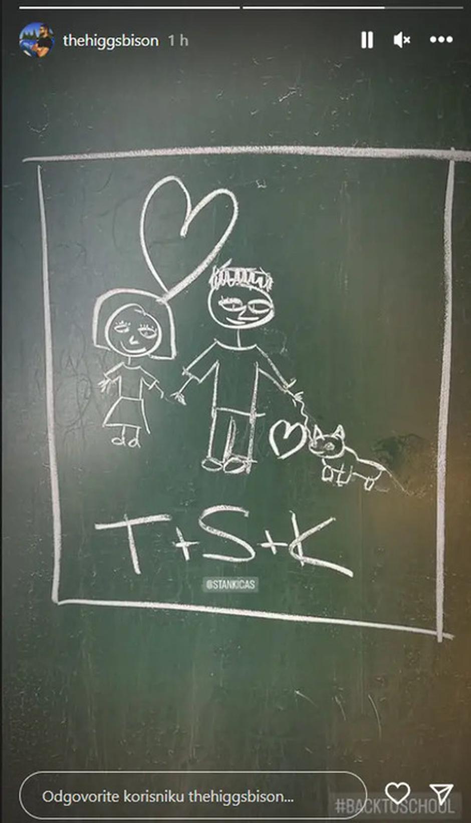Radi se o crtežu na kojem se nalaze zaljubljeni muškarac i žena, a pored je pas. „T+S+K“, piše pored crteža, a sudeći prema onome što je nacrtano, slovo T označava ime Toni, slovo S označava ime Stankica, a slovo K psa Kiću. Tonija je ova gesta toliko raznježila da ju je odmah podijelio s pratiteljima. Pored je označio svoje djevojku, pobjednicu treće sezone Stankicu Stojanović.