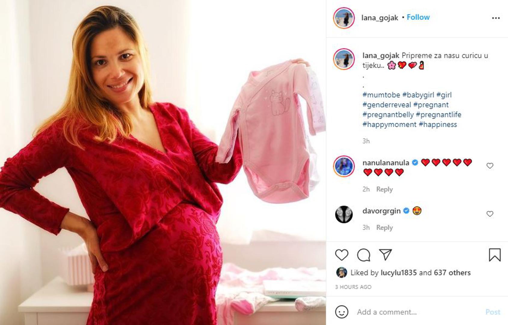 "Pripreme za našu curicu u tijeku", napisala je Lana uz fotografiju ružičastog bodija za bebu.