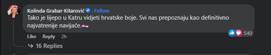 - Tako je lijepo u Katru vidjeti hrvatske boje. Svi nas prepoznaju kao definitivno najvatrenije navijače - napisala je.