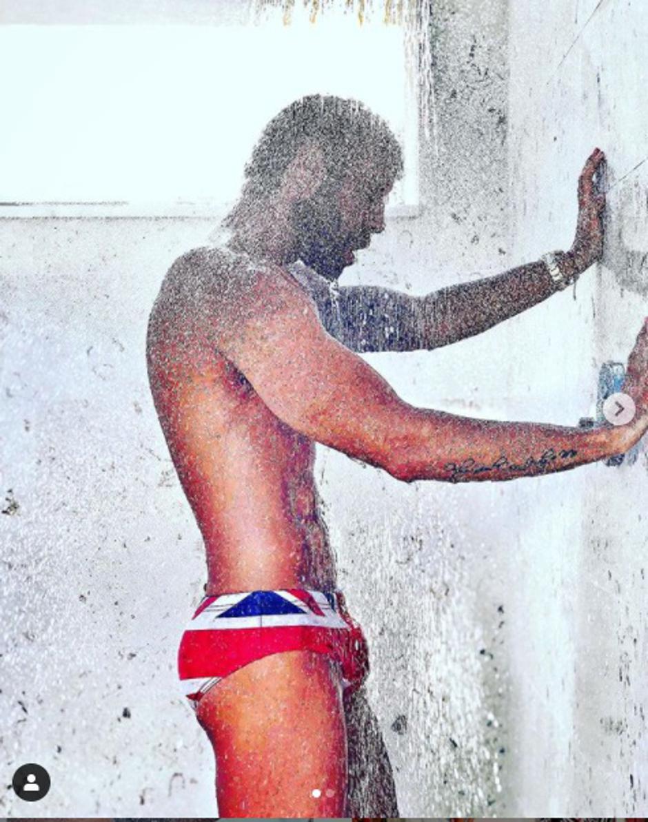 Modni stilist objavio je fotografiju na kojoj se tušira na vanjskom tušu i na sebi ima kupaće gaće s motivom britanske zastave