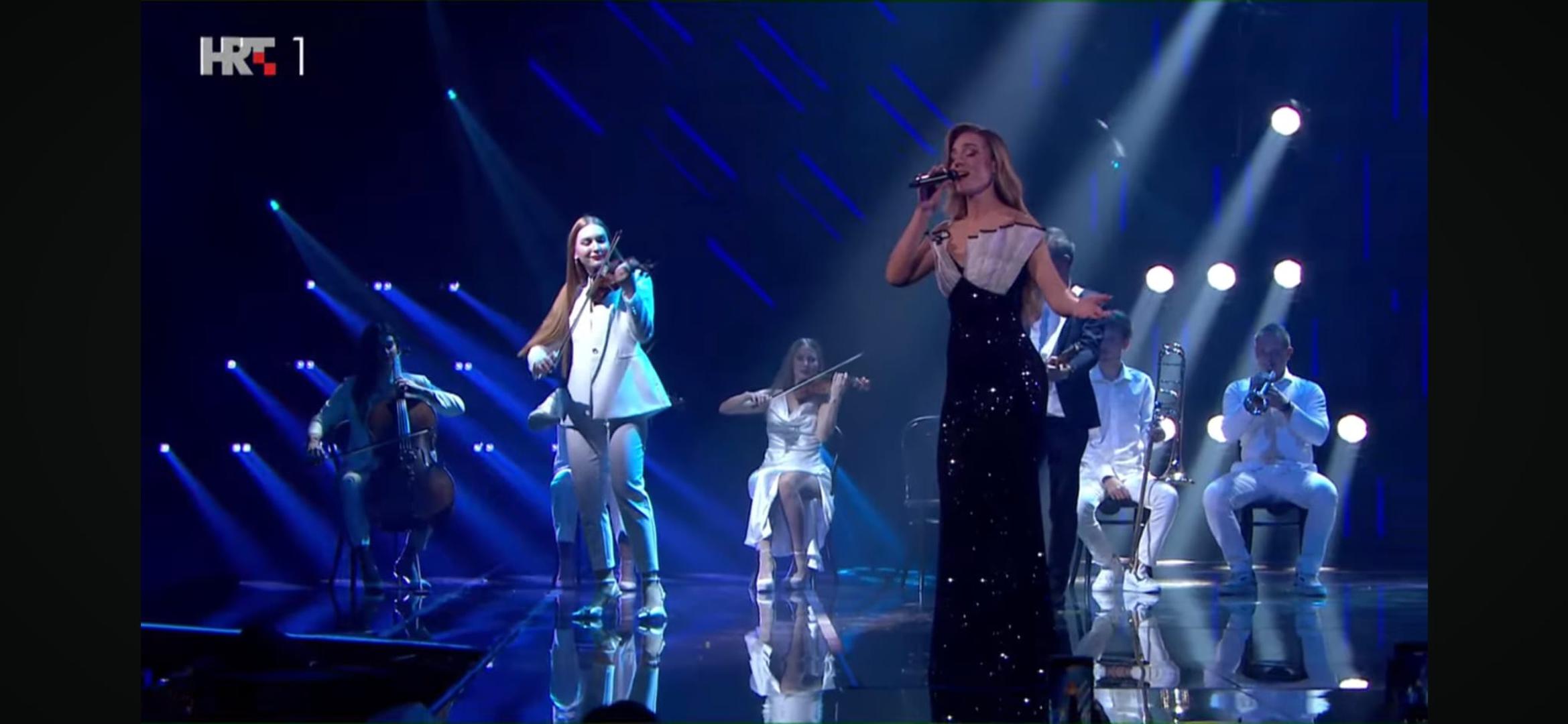 20:53 Voditelji Iva i Ivan javljaju su se iz tzv. green rooma, a potom su Barbara i Duško najavili nastupe Irme i Lare Demarin.