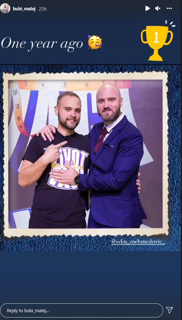 "Prije točno godinu dana dobio sam priliku i odlučio sam je maksimalno iskoristiti. Trud se isplatio, ali svakodnevna borba još uvijek traje", napisao je na svog Facebook profilu uz video njegovog profila iz showa.