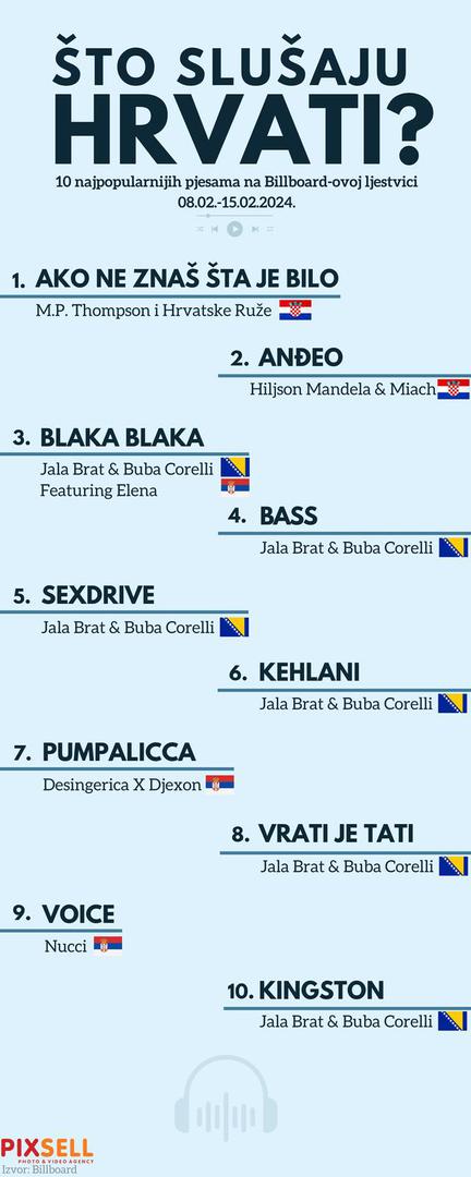 Billboard posljednjih godina otkriva koja je pjesma najslušanija u Hrvatskoj na streaming servisima. Među najslušanijima često se nalaze uspješnice regionalnih glazbenika, a ovoga puta broj jedan je pjesma "Ako ne znaš što je bilo" koju izvode Marko Perković Thompson i Hrvatske Ruže. Pjesma je to koja je na tablici najslušanijih već 28 tjedana, a prošlog je tjedna bila na petom mjestu. Ovaj hit postao je novom neslužbenom himnom rukometaša, a na dočeku nakon Svjetskog prvenstva naši su momci tražili i da im ga Thompson otpjeva uživo na Trgu bana Josipa Jelačića.