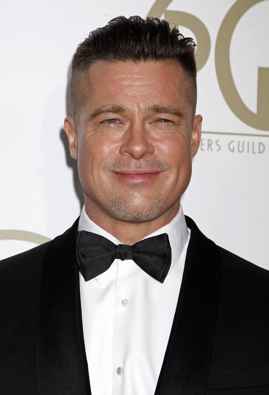 Brad Pitt s kratkom zalizanom kosom i rumenim obrazima iznenadio je svojom pojavom na crvenom tepihu Producers Guild Awardsa na Beverly Hillsu, gdje je nagrađen kao jedan od producenata filma "12 godina ropstva".