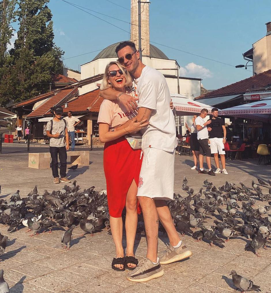 Sretni par sada je otputovao u Bosnu i Hercegovinu gdje su se zaustavili u Sarajevu. Na najnovijim fotografijama pozirali su ispred džamije, zagrljeni usred golubova.