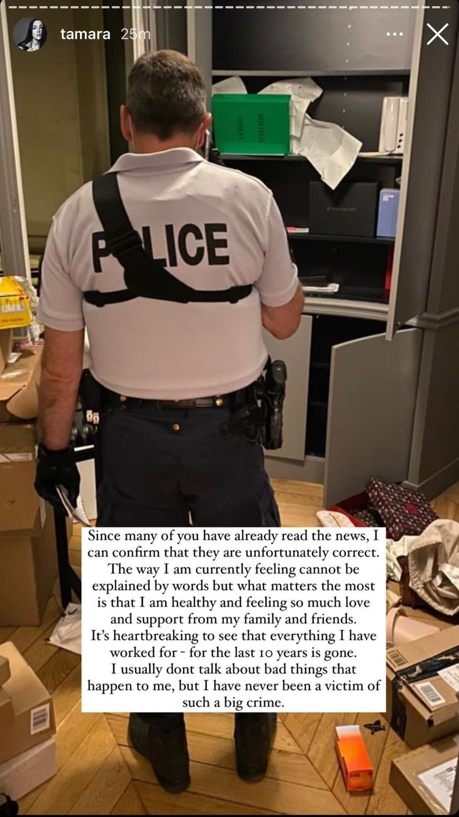 Kako prenose francuski mediji, Tamara je u kasnim satima stigla kući i odmah pozvala policiju nakon što ju je dočekao prizor opustošenog i razbacanog stana u kojem živi sa svojim partnerom kojega skriva od očiju javnosti, ali obožavatelji pretpostavljaju da je riječ o Filippu Testi koji također radi u modnoj industriji, a zbog kojeg se Tamara prošle godine za vrijeme lockdowna preselila iz Brightona u Pariz.