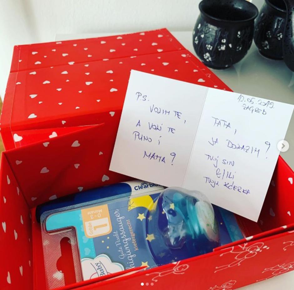 - Ovako je to izgledalo 12.5., na Majčin dan, kad je budući TATA saznao da mu dolazi njegova radost....beba - napisala je Irena na Instagramu gdje  je podijelila i fotografiju s rezultatom testa za trudnoću i poklonom kojim je svom suprugu otkrila da je trudna.
