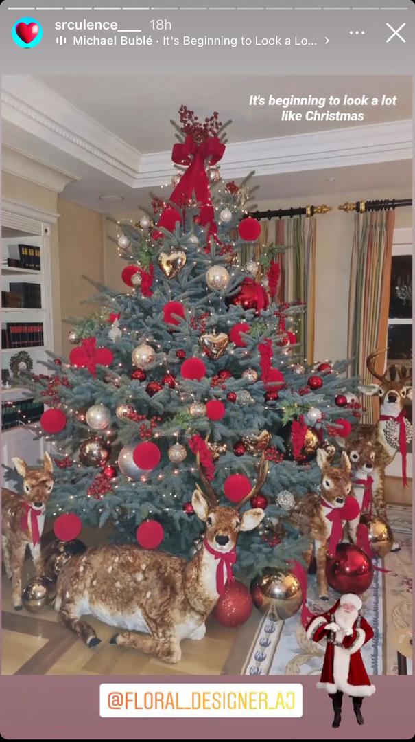 Bor je ukrašen crvenim mašnama, lampicama i kuglicama u zlatnoj i crvenoj boji, a oko bora su postavljene figure jelena koje su gotovo u prirodnoj veličini. Iva je pokazala i kako je dekorirala dnevni boravak, a osim raskošnog bora odabrala je i ogromni crveni vijenac od borovine koji je postavila iznad kamina.