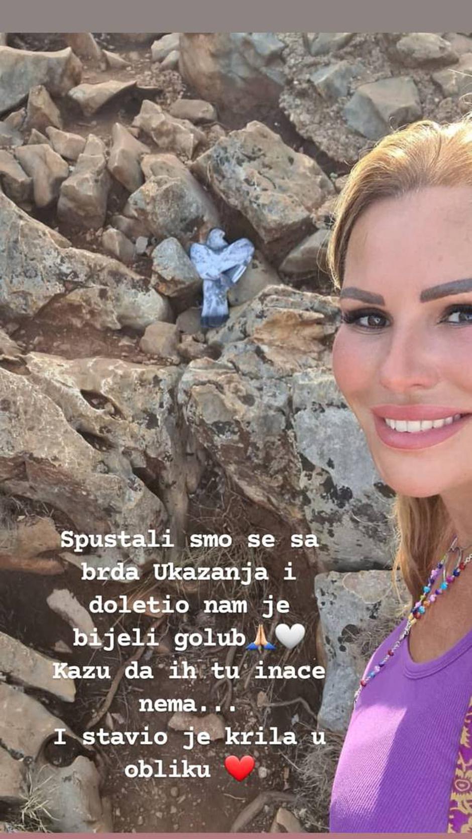 - Spuštali smo se sa brda Ukazanja i doletio nam je bijeli golub. Kažu da ih tu inače nema... I stavio je krila u obliku srca - napisala je Iva uz jednu od fotografija iz Međugorja.