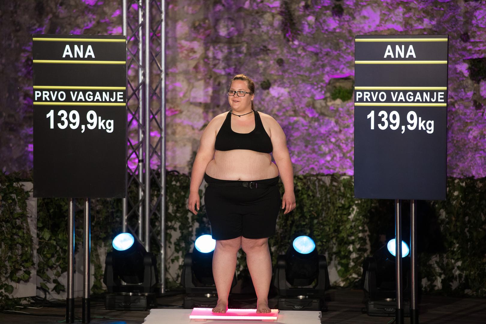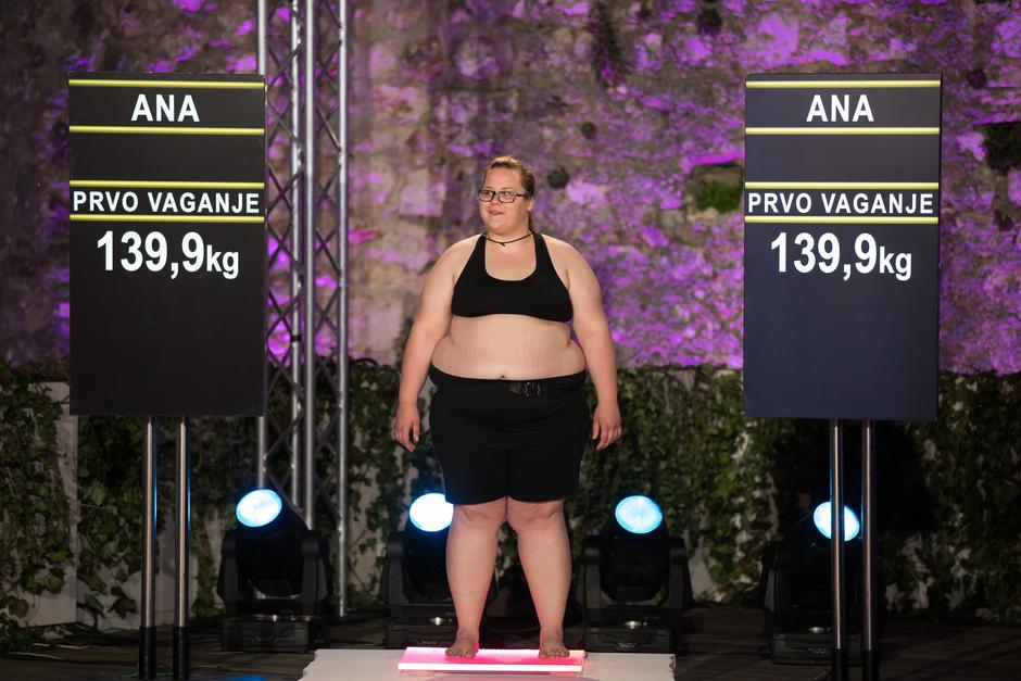 Ana Žderić (22) dolazi iz Nijemaca, pokraj Vinkovaca. Do sedme godine života bila je po bolnicama. ''Nije imala ni 900 grama kada se rodila'', rekao je njezin tata. Nakon smrti majke se povukla u sebe, rekle su njezine sestre, a tada su se i kilogrami počeli gomilati. ''Mama mi jako nedostaje u životu i znam da bi joj bilo srce ogromno da zna da sam tu'', rekla je Ana dodajući da ni njezine sestre nisu znale koliko pati iznutra. ''Sebi sam napravila najveću štetu, trebala sam se otvoriti nekome, sestrama ili tati', ali nisam. Nisam željela da oni budu tužni kao ja', priznala je Ana u suzama. Vaga joj je pokazala 139,9 kilograma.
