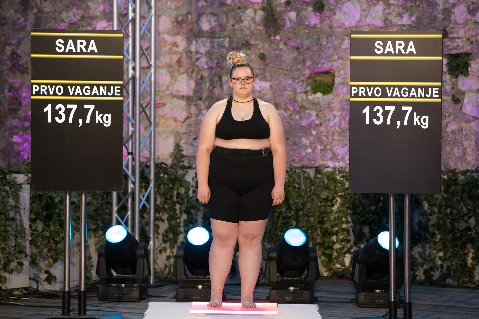 Sara Sitarić (18) je najmlađa kandidatkinja showa. ''Moj najveći problem je debljina i oduvijek sam bila najdeblja u društvu i nikad nisam imala normalnu težinu. Uvijek me strah hoće li netko moći proći od mene, hoću li uspjeti sjesti u busu u stolicu…'', ispričala je Sara svoju priču te dodala da misli da je razočarenje roditeljima. ''Možda su oni htjeli nešto drugo, a došla sam ja, ovako, s ovim problemom kojeg se teško rješavam. Ne želim da se moji roditelji osjećaju loše zbog mene'', kazala je Sara dodajući da ona druge želi učiniti sretnima. ''Sanjam o danu da budem sretna sa sobom'', zaključila je 18-godišnjakinja koja je maturirala taman na dan prvog snimanja. Da je Sari teško boriti se s kilogramima, i uz to i sa svojom okolinom koja je ne prihvaća,  otkrila je pred svima. ''Kada izađem van, kažu mi da tu izlaze 'ribe', a ne debela stoka, i tako…'', tužno je ispričala. Kad je stala na vagu ona je pokazala 137,7 kilograma.
