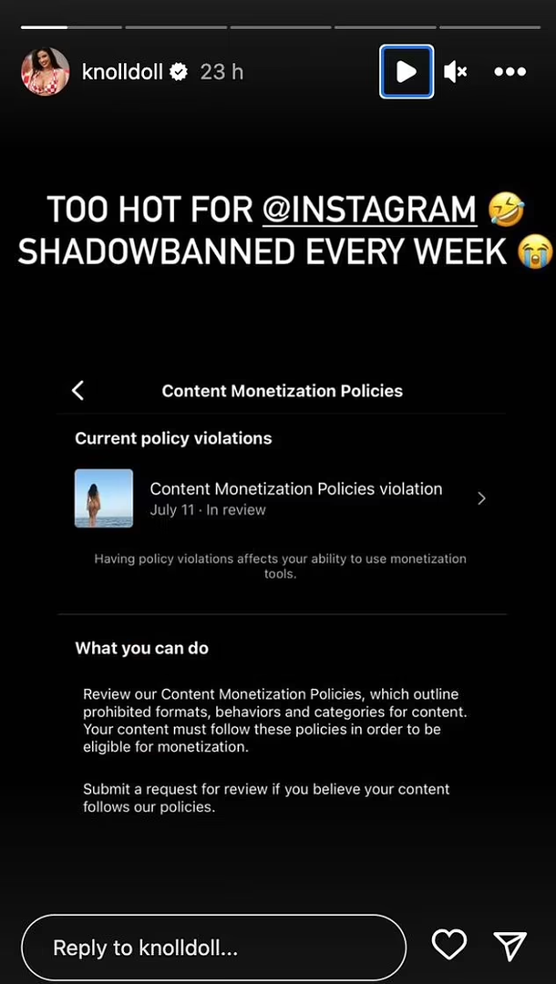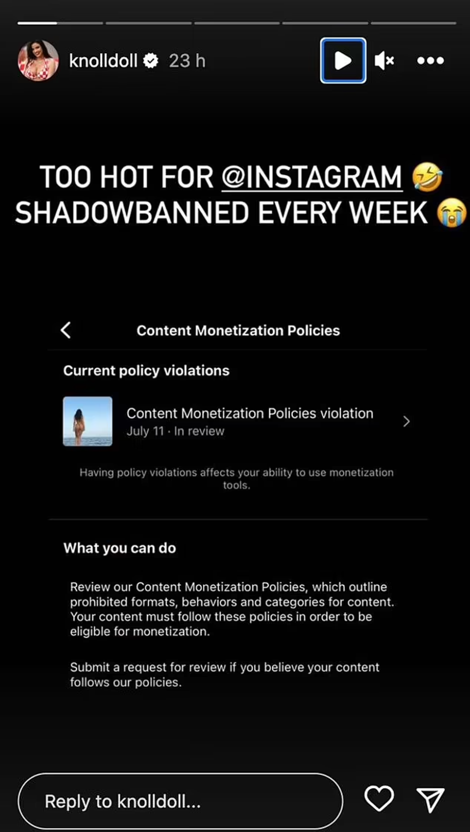 "Preseksi sam za Instagram, svaki tjedan me uklanjaju", objavila je Ivana uz smijeh. Na uklonjenom videu Ivana se nalazi leđima okrenuta kameri u moru, čime je uspjela istaknuti bujnu stražnjicu.