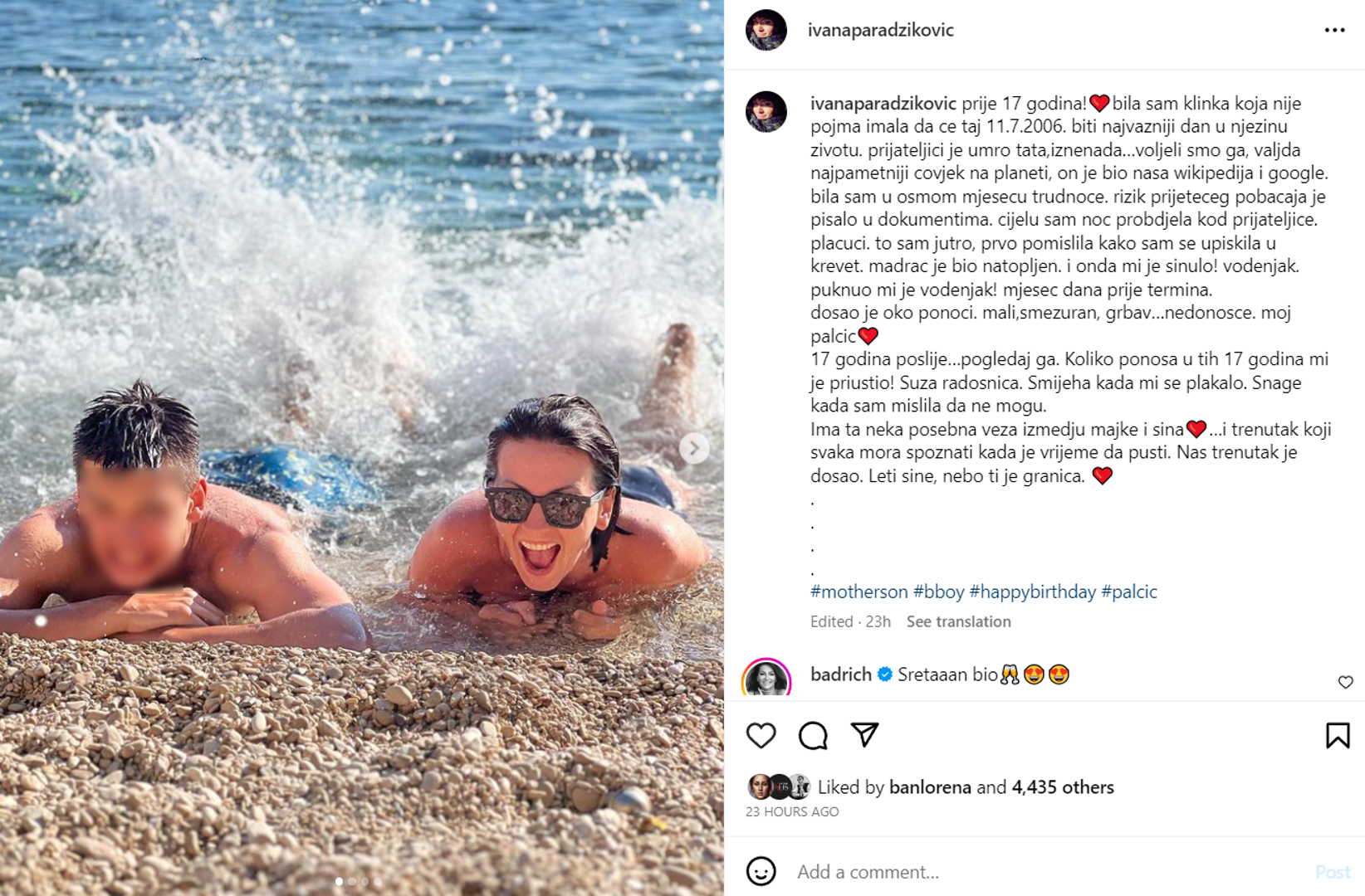 "17 godina poslije…pogledaj ga. Koliko ponosa u tih 17 godina mi je priuštio! Suza radosnica. Smijeha kada mi se plakalo. Snage kada sam mislila da ne mogu. Ima ta neka posebna veza između majke i sina…i trenutak koji svaka mora spoznati kada je vrijeme da pusti. Naš trenutak je došao. Leti sine, nebo ti je granica", zaključila je novinarka u emotivnoj objavi.