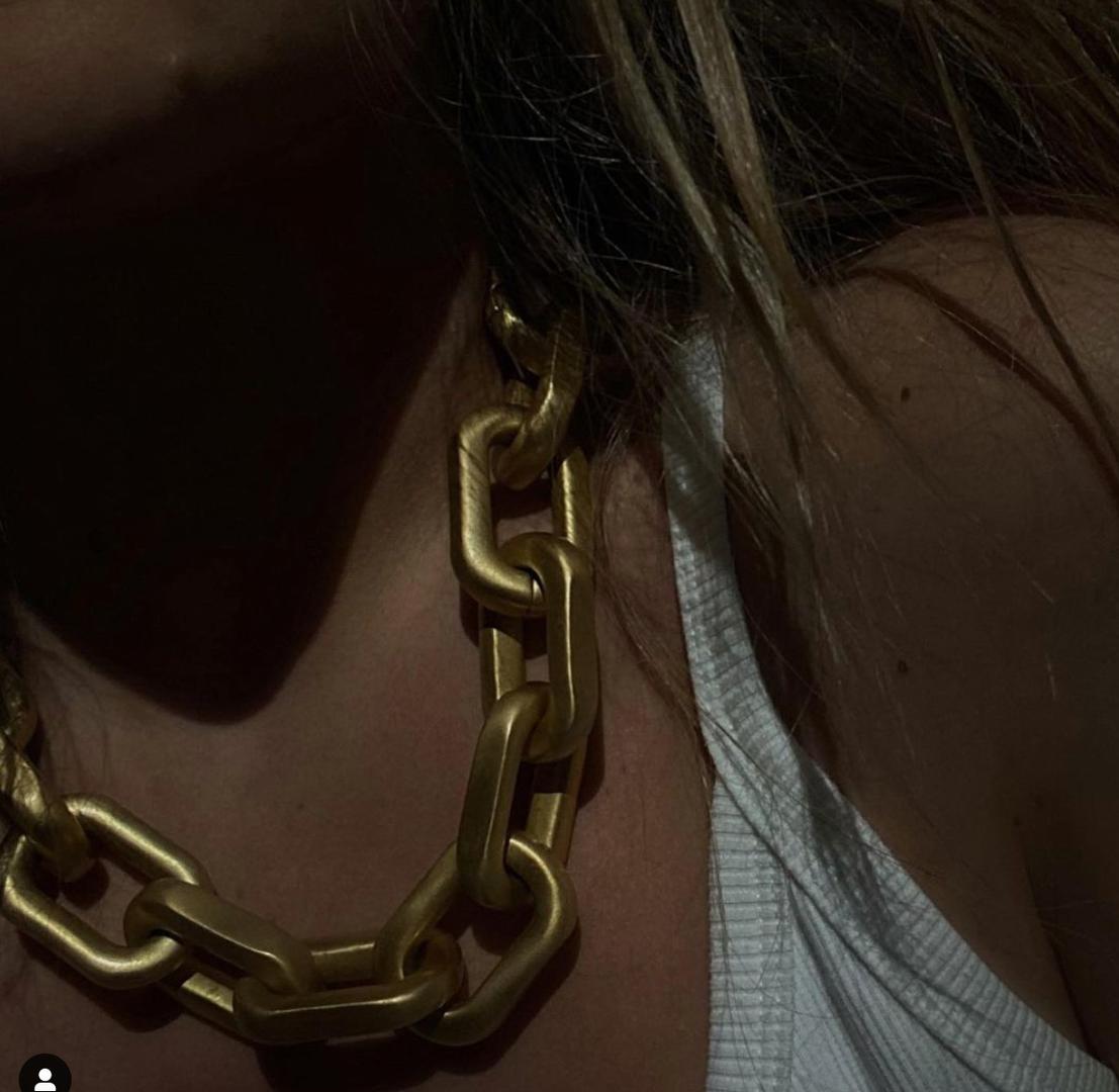 Nakit sestara Josefine i Linette obožavaju modne influencerice jer je jednostavan, ali upečatljiv i dolazi samo u srebrnoj i zlatnoj boji i napravljen je od mesinga i obložen 14 karatnim zlatom. Izabel ga je u ovom slučaju kombinirala s majicom svog brenda Lunilou.