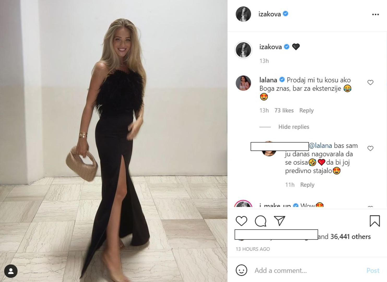"Prodaj mi tu kosu ako boga znaš, bar za ekstenzije", poručila joj je pjevačica Lana Jurčević, a njezin je komentar prikupio više od 70 lajkova. Izdanje supruge Matea Kovačića oduševilo je i Albinu koja se također javila u komentarima. "Wow", napisala joj je pjevačica i dodala emotikon srca.